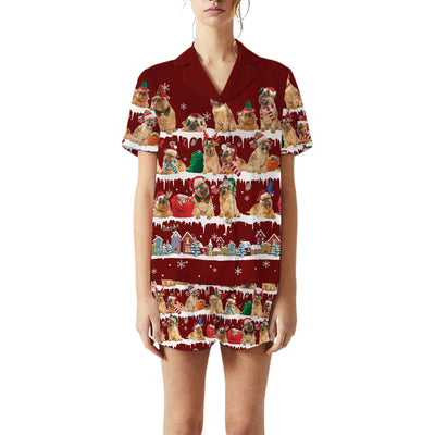 Griffon Bruxellois Dog Christmas Short Satin Pajama Set