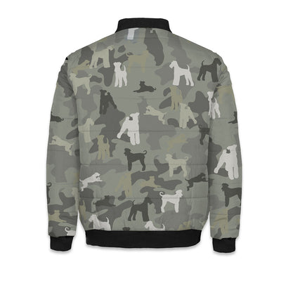 Airedale Terrier Camo Puffer Bomber Jacket - Warm Winter Coat For Dog Lover