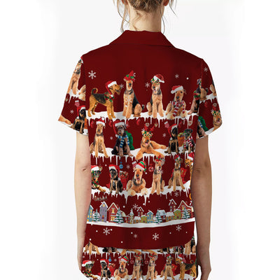 Airedale Terrier Dog Christmas Short Satin Pajama Set