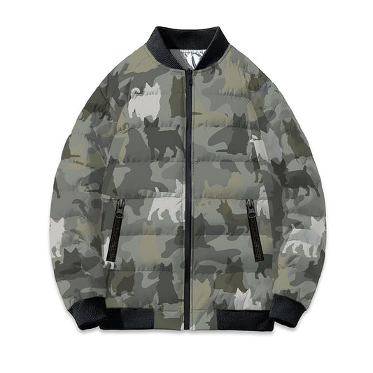 Australian Terrier Camo Puffer Bomber Jacket - Warm Winter Coat For Dog Lover