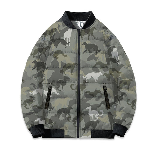 Borzoi Camo Puffer Bomber Jacket - Warm Winter Coat For Dog Lover