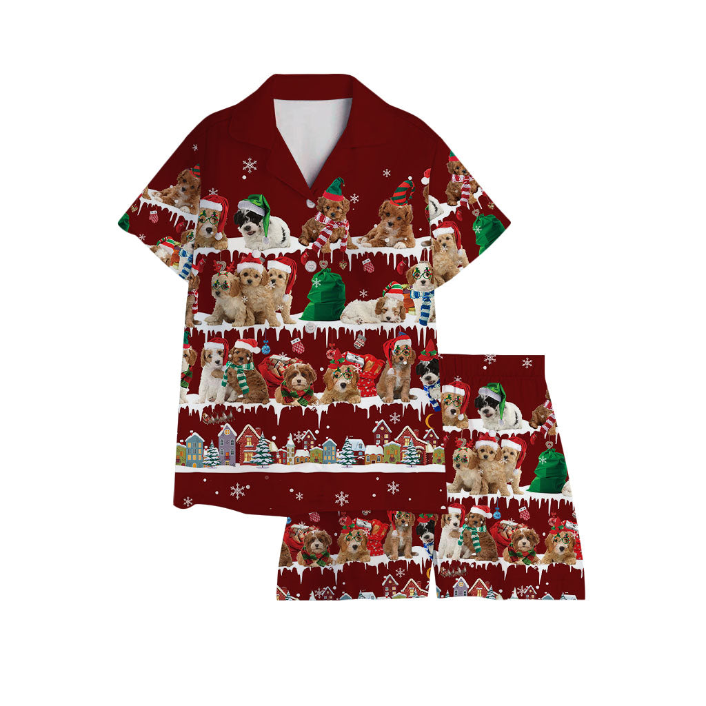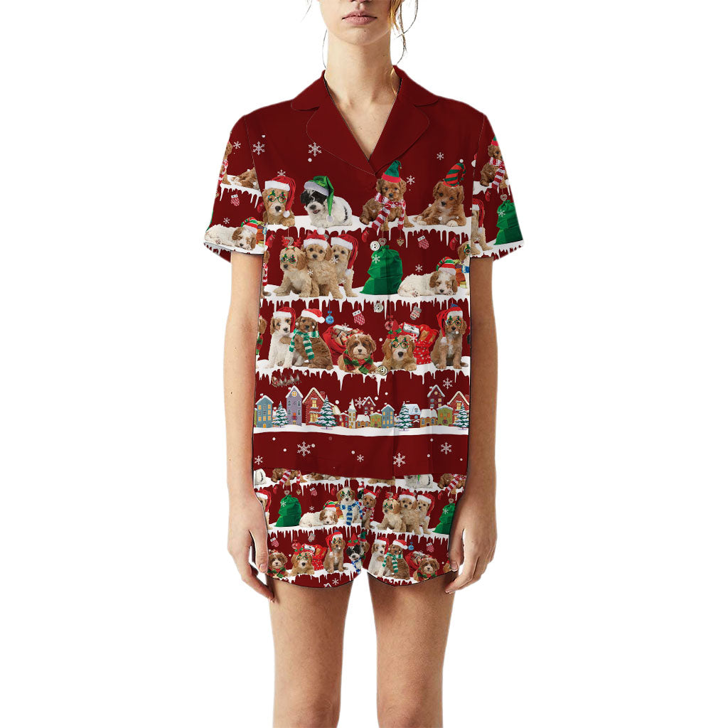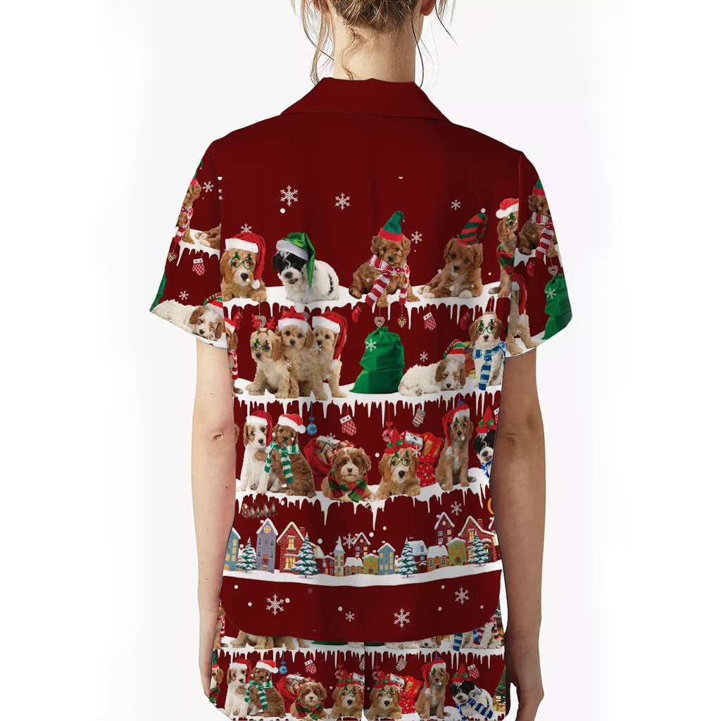 Cavapoo Dog Christmas Short Satin Pajama Set