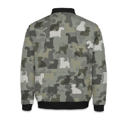 Cesky Terrier Camo Puffer Bomber Jacket - Warm Winter Coat For Dog Lover