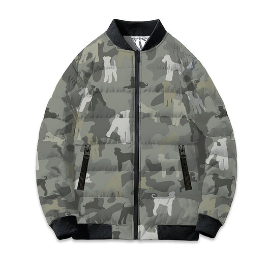Airedale Terrier Camo Puffer Bomber Jacket - Warm Winter Coat For Dog Lover