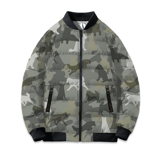 Alaskan Malamute Camo Puffer Bomber Jacket - Warm Winter Coat For Dog Lover