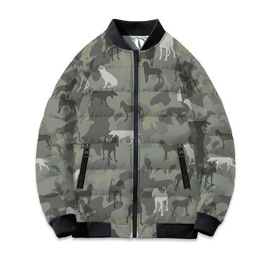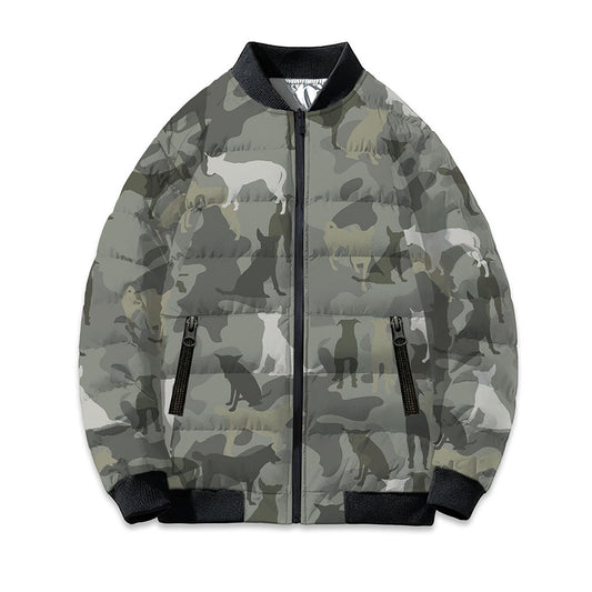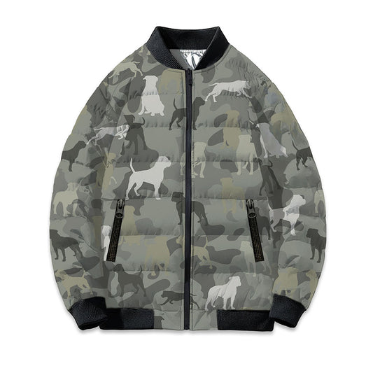 American Bulldog Camo Puffer Bomber Jacket - Warm Winter Coat For Dog Lover