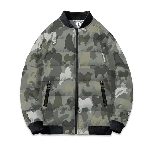 American Eskimo Dog Camo Puffer Bomber Jacket - Warm Winter Coat For Dog Lover