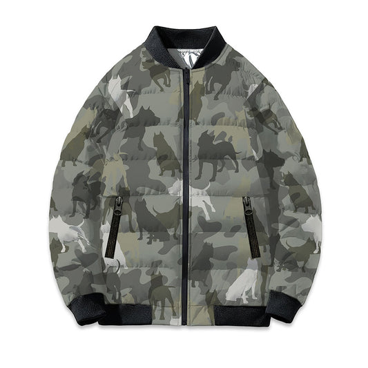 American Pit Bull Terrier Camo Puffer Bomber Jacket