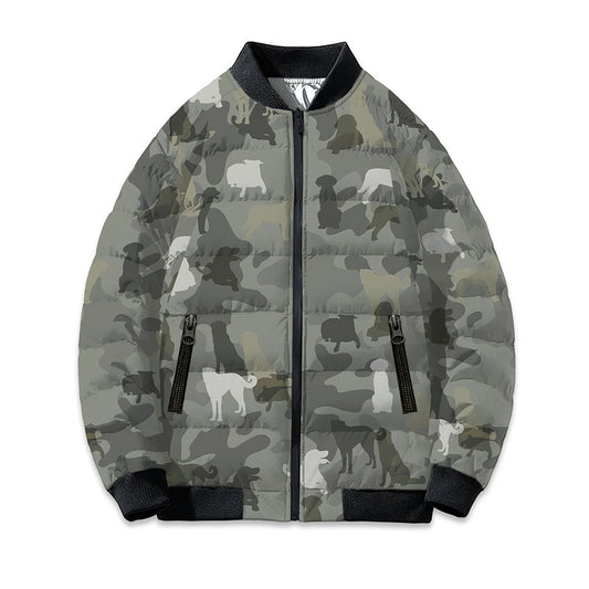 Aspin Camo Puffer Bomber Jacket - Warm Winter Coat For Dog Lover