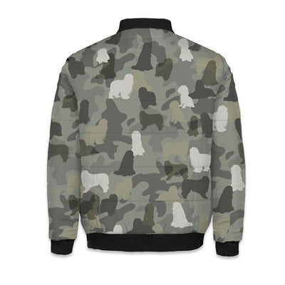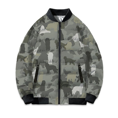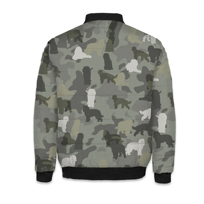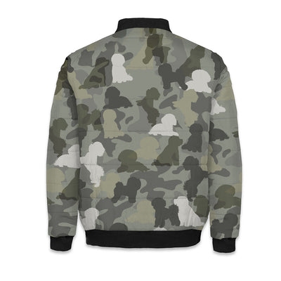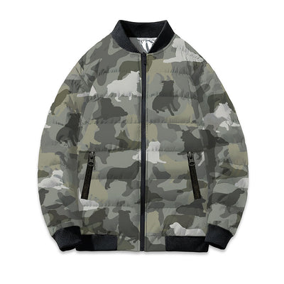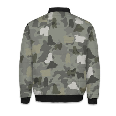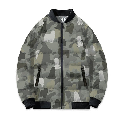 Bearded Collie Camo Puffer Bomber Jacket - Warm Winter Coat For Dog Lover