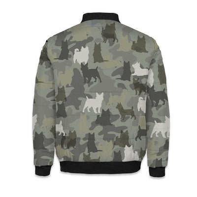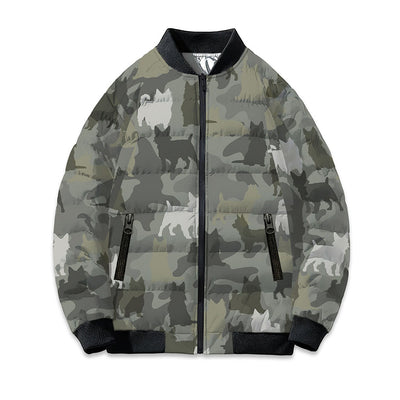 Australian Kelpie Camo Puffer Bomber Jacket - Warm Winter Coat For Dog Lover