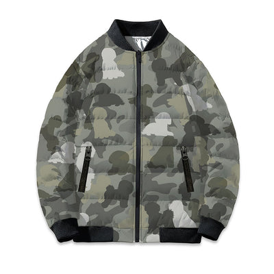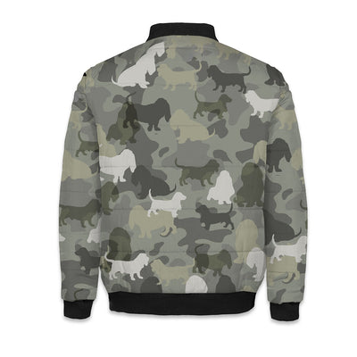 Basset Hound Camo Puffer Bomber Jacket - Warm Winter Coat For Dog Lover