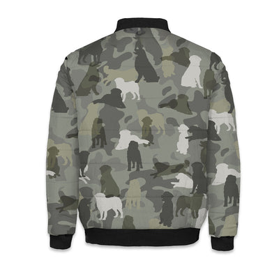 Bernedoodle Camo Puffer Bomber Jacket - Warm Winter Coat For Dog Lover