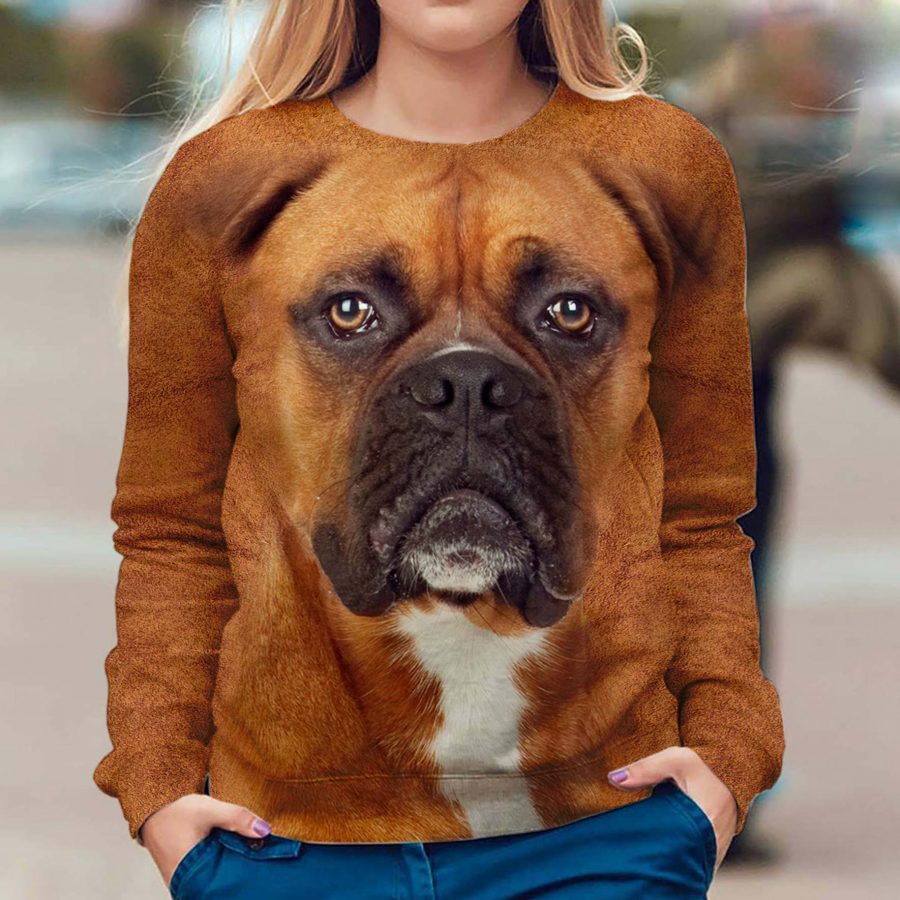 Order your Premium Sweater with Boxer Dog Face and Hair Design today and showcase your love for Boxers in style!