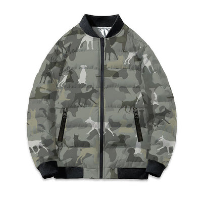 German Pinscher Camo Puffer Bomber Jacket - Warm Winter Coat For Dog Lover