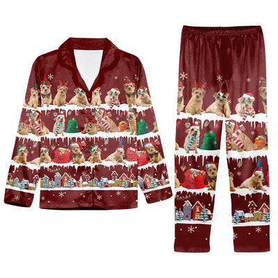 Norfolk Terrier Dog Christmas Short Satin Pajama Set