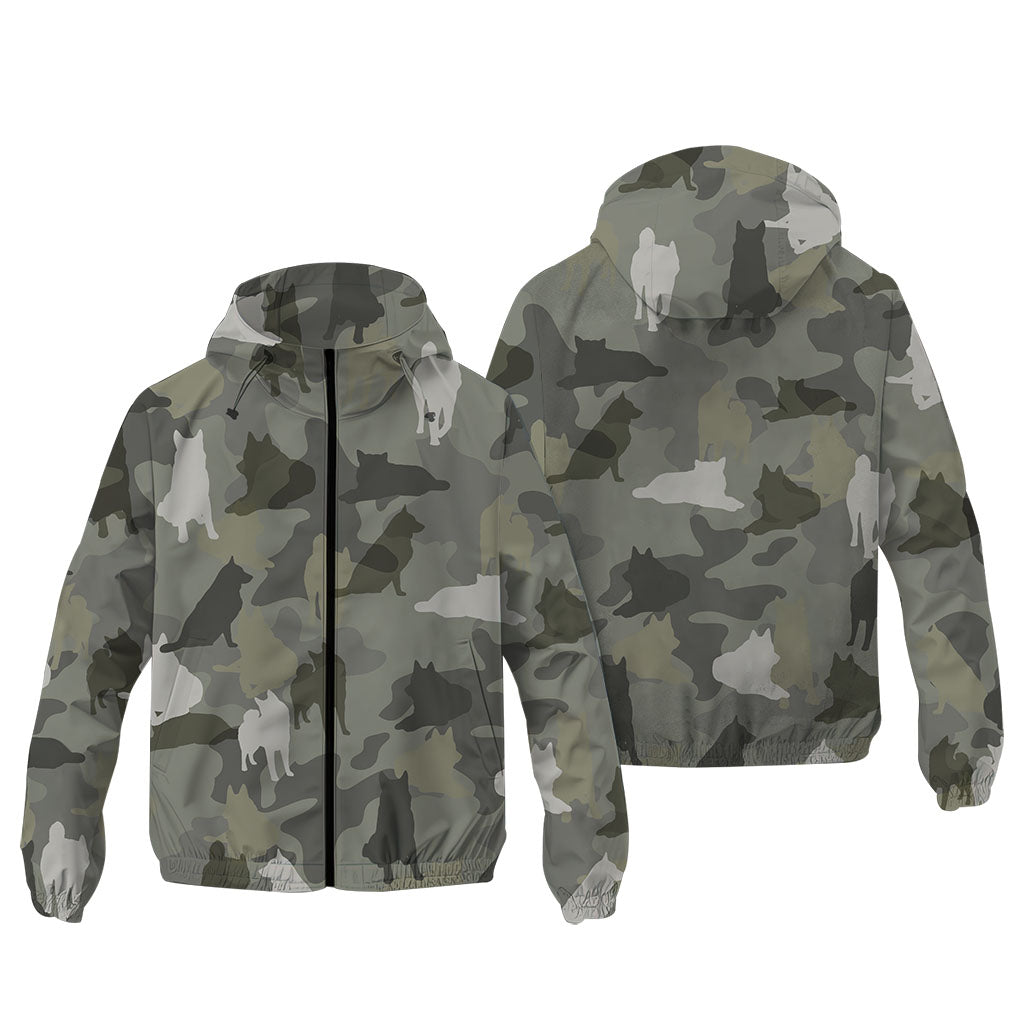 Norwegian Elkhound Camouflage Windbreaker - Camo Dog Hooded Jacket