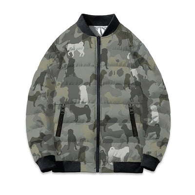 Shar Pei Camo Puffer Bomber Jacket - Warm Winter Coat For Dog Lover