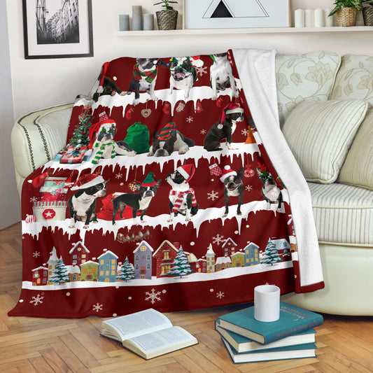 Boston Terrier Snow Christmas Blanket