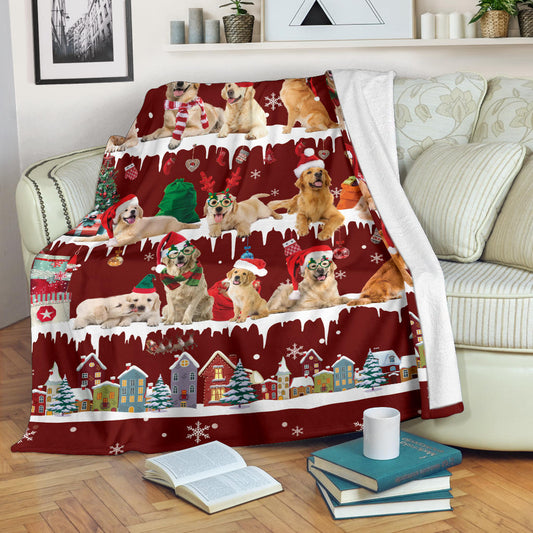Golden Retriever Snow Christmas Blanket