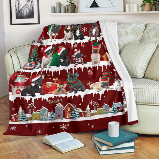 French Bulldog Snow Christmas Blanket