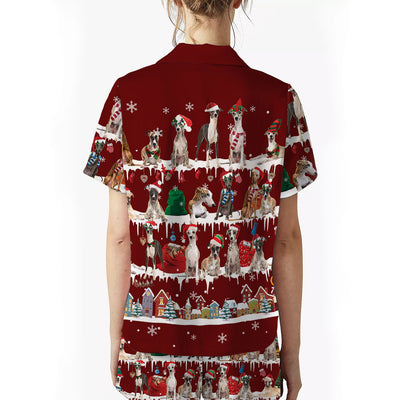 Whippet Dog Christmas Short Satin Pajama Set