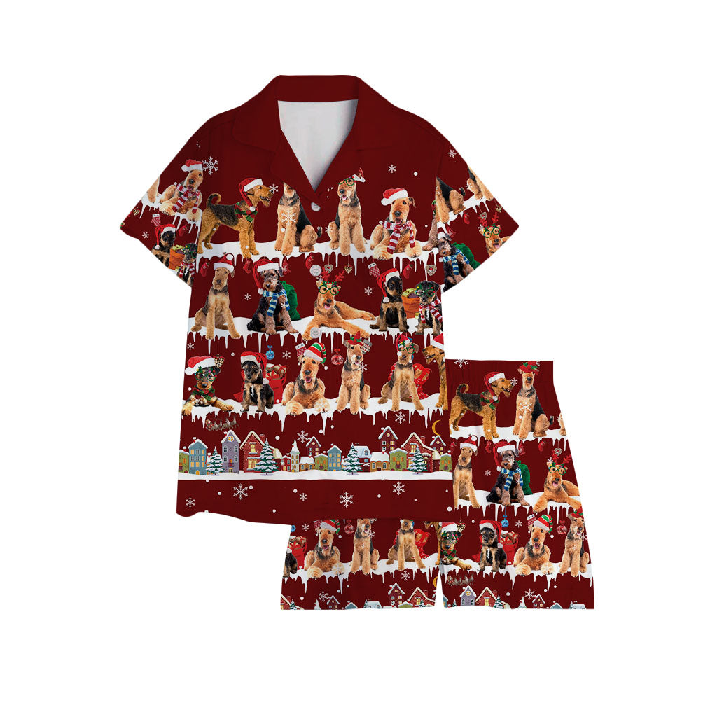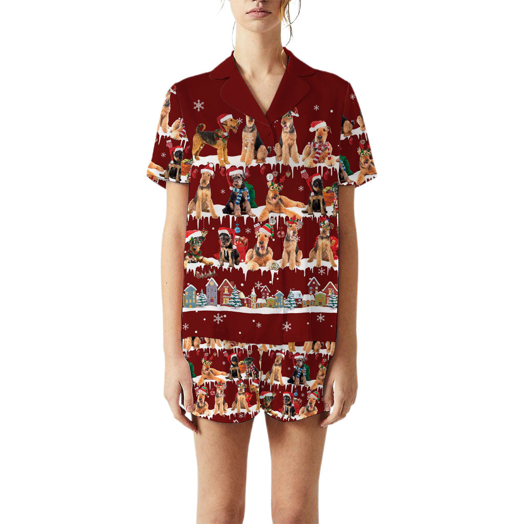 Airedale Terrier Dog Christmas Short Satin Pajama Set
