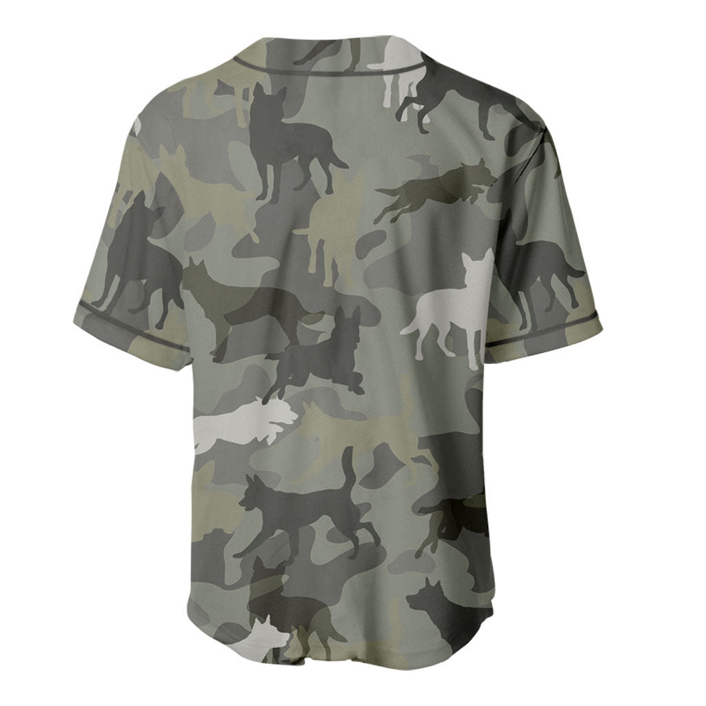 Australian Kelpie Camouflage Baseball Jersey - Camo Pattern Dog Shirt