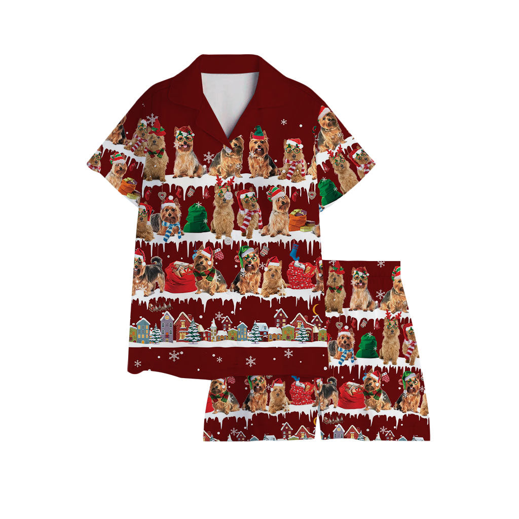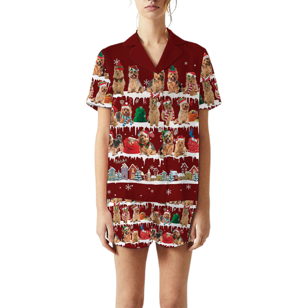 Australian Terrier Dog Christmas Short Satin Pajama Set