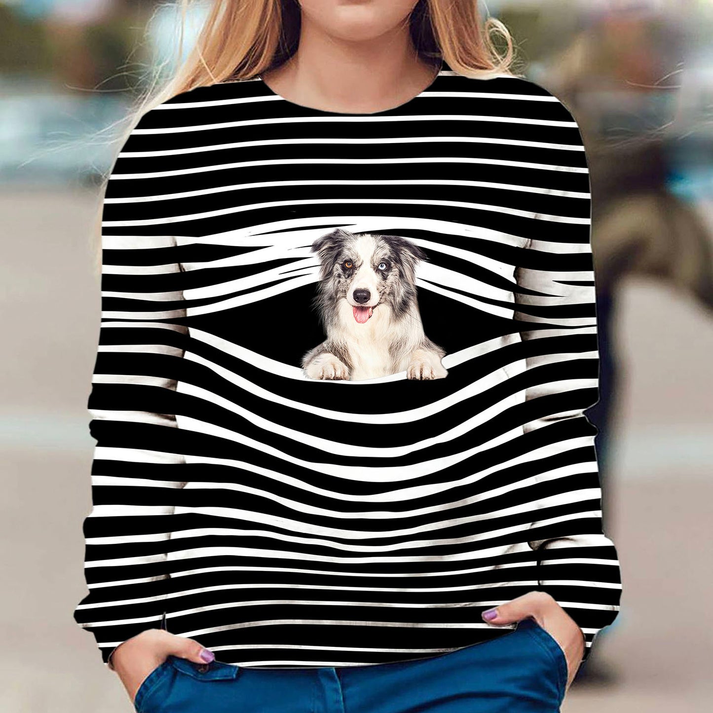 Blue Merle Collie - Stripe - Premium Sweater