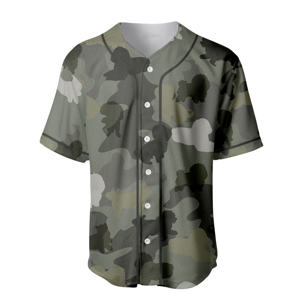 This Bolognese Camouflage Baseball Jersey features a unique camo pattern with adorable dog illustrations, perfect for dog lovers. Made for humans, not dogs, this stylish and comfortable jersey is a must-have for any dog enthusiast. Perfect for casual outings or showing off your love for dogs, this jersey is sure to turn heads.