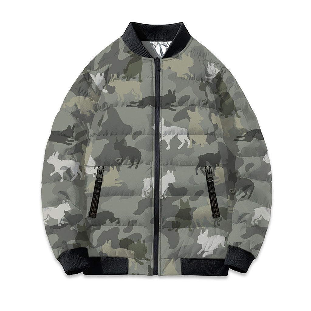 Boston Terrier Camo Puffer Bomber Jacket - Warm Winter Coat For Dog Lover