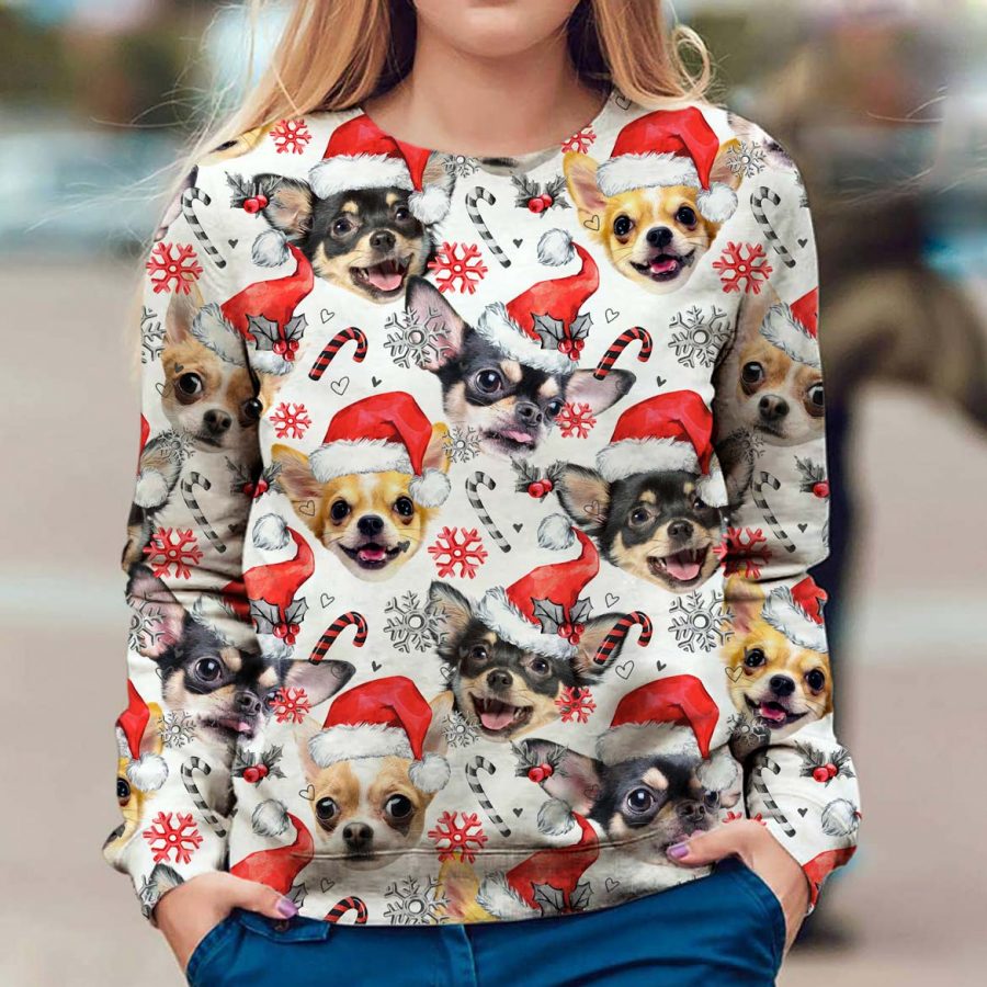 Embrace the festive spirit with our Premium Christmas Sweater featuring an adorable Chihuahua design. Crafted from high-quality materials, this sweater offers both comfort and style, making it the perfect addition to your holiday wardrobe. The vibrant colors and intricate detailing of the Chihuahua motif are sure to make you stand out at any Christmas gathering. Ideal for dog lovers and those who appreciate unique holiday apparel, this sweater is available in various sizes to ensure a perfect fit for everyone. Celebrate the season in style and warmth with this charming Christmas sweater.