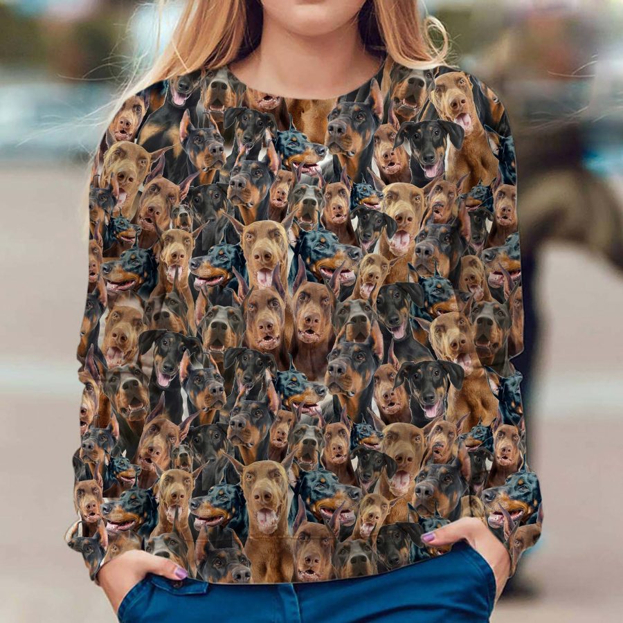 Introducing the Premium Doberman Pinscher Full Face Sweater, a must-have for dog lovers and fashion enthusiasts alike. This high-quality sweater features a stunning full-face design of the majestic Doberman Pinscher, crafted with attention to detail and vibrant colors. Made from soft, durable materials, it ensures comfort and warmth during the colder months. Perfect for casual outings or cozy nights in, this sweater is a unique addition to any wardrobe. Show off your love for Dobermans with this eye-catching piece that combines style and comfort seamlessly. Available in various sizes to fit all dog lovers. Order yours today and make a bold fashion statement!