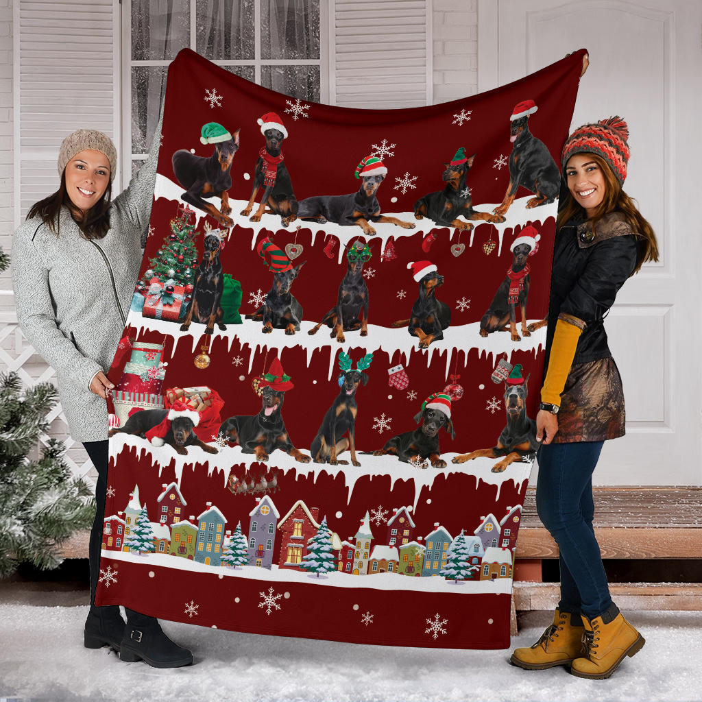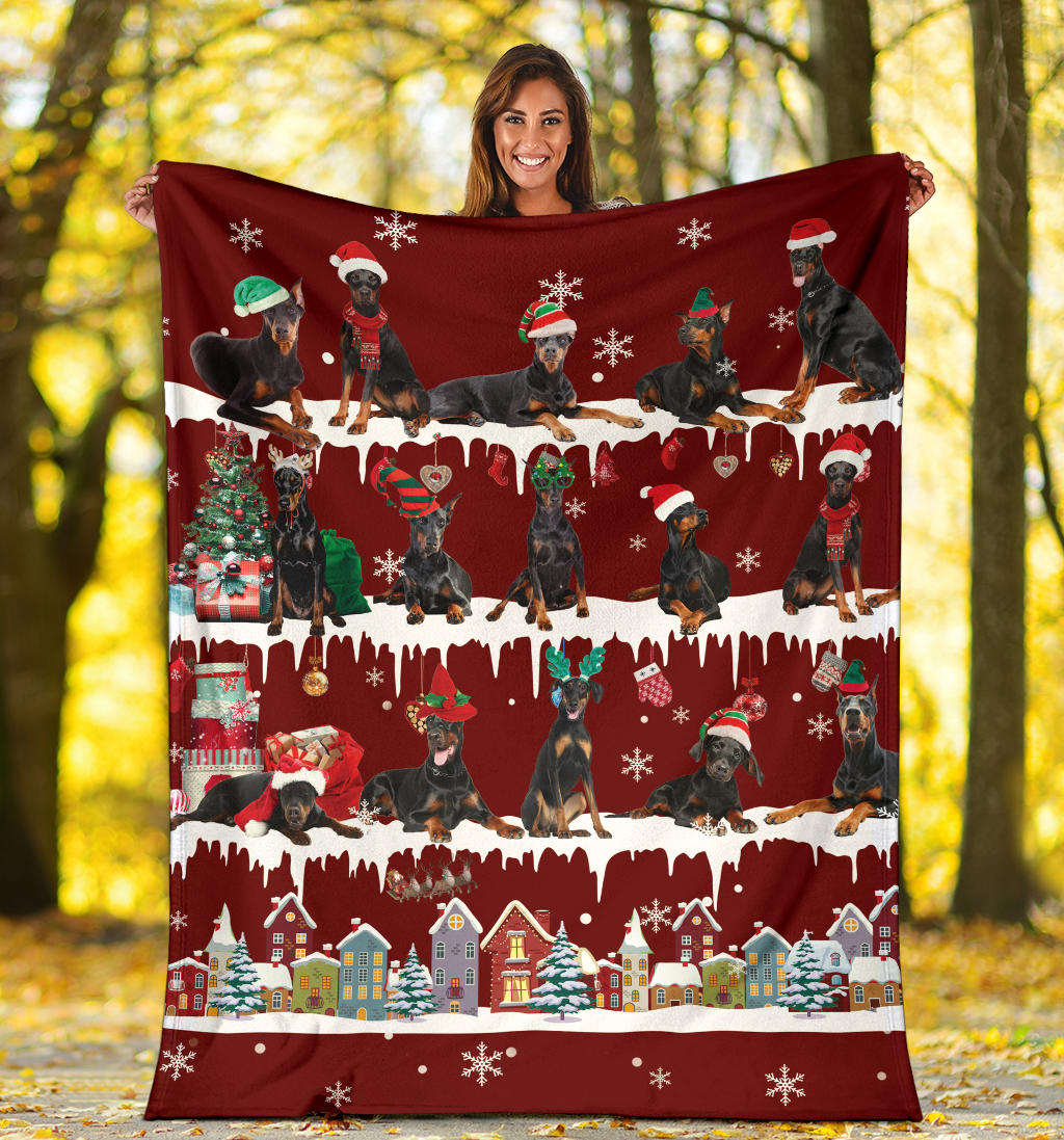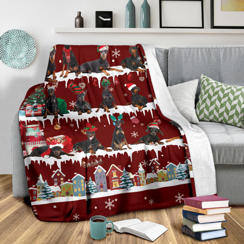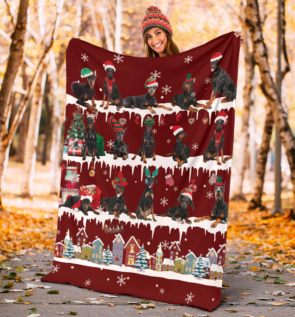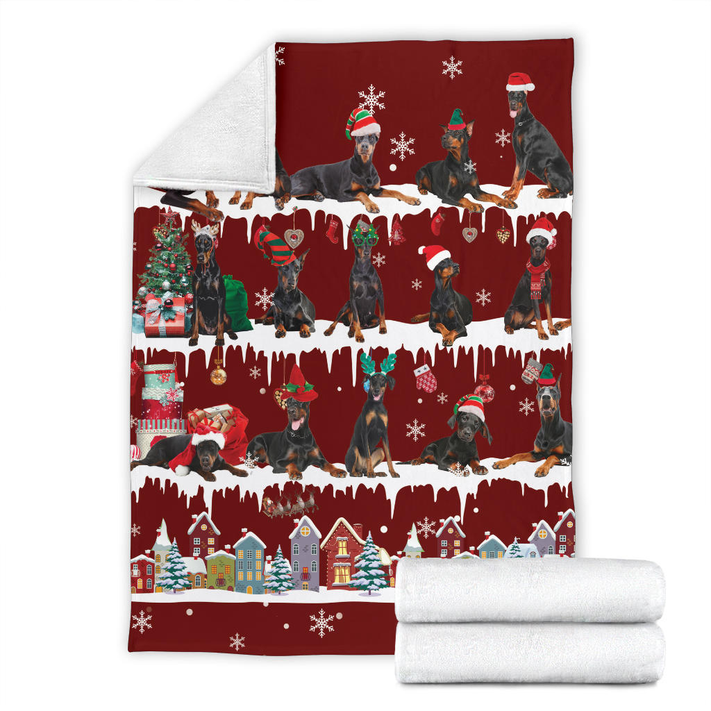 Doberman Pinscher Snow Christmas Blanket