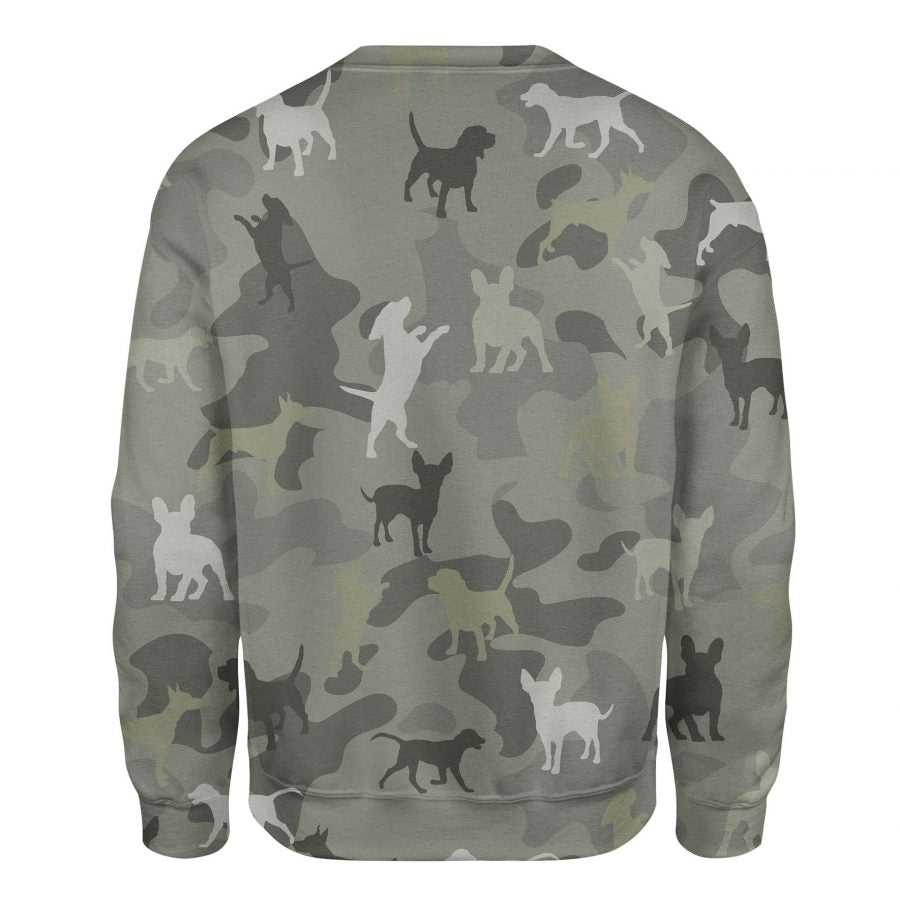 Keep your furry friend warm and stylish with our Premium Camo Dog Sweater. Crafted from high-quality, soft materials, this sweater ensures comfort and durability for your pet. The trendy camouflage design is perfect for outdoor adventures or cozy indoor lounging. Available in various sizes to fit all breeds, this sweater features a snug fit and easy-to-use fasteners for hassle-free dressing. Ideal for chilly weather, it provides the perfect blend of fashion and function. Upgrade your dog's wardrobe with this must-have accessory and make every walk a fashionable one!