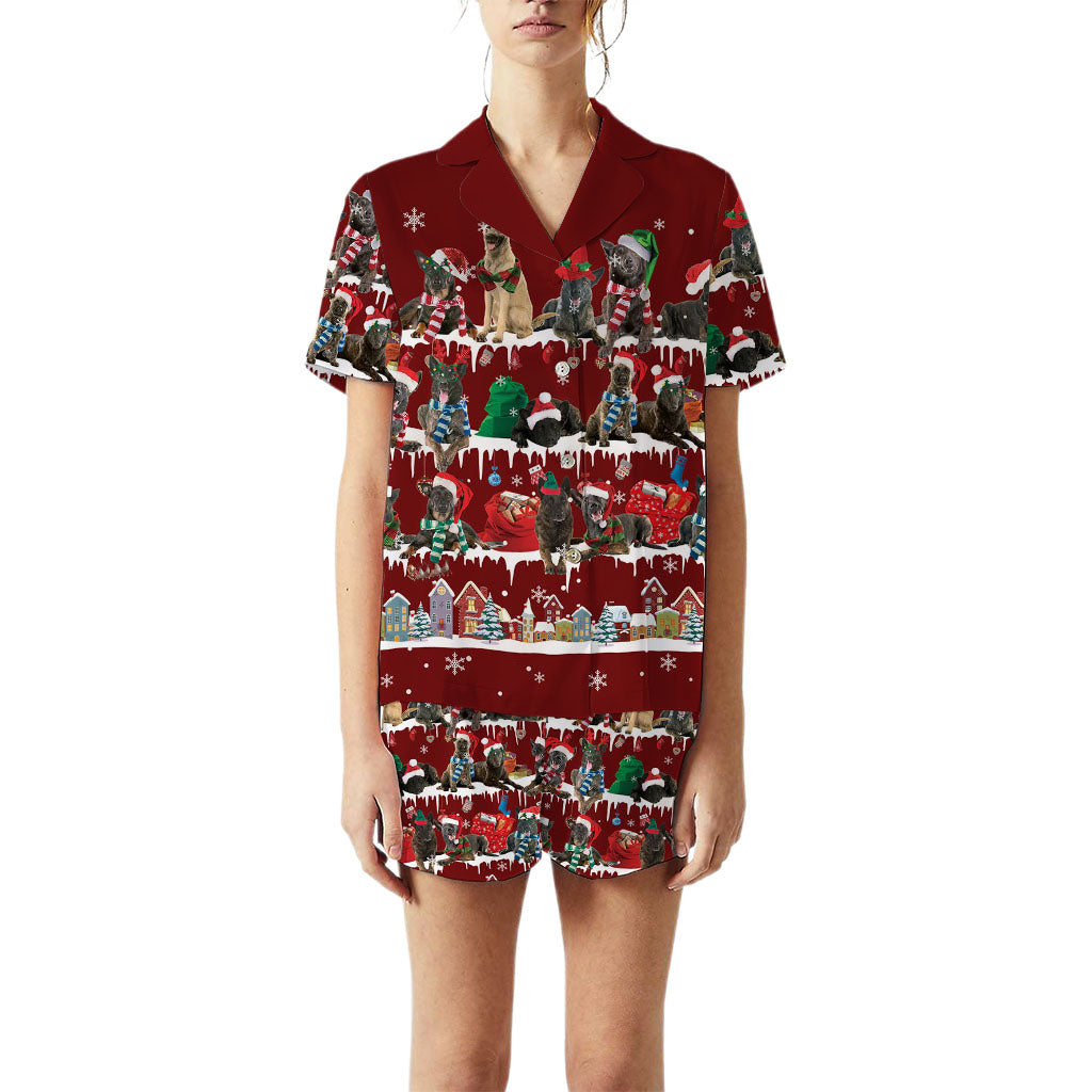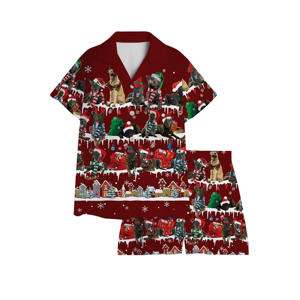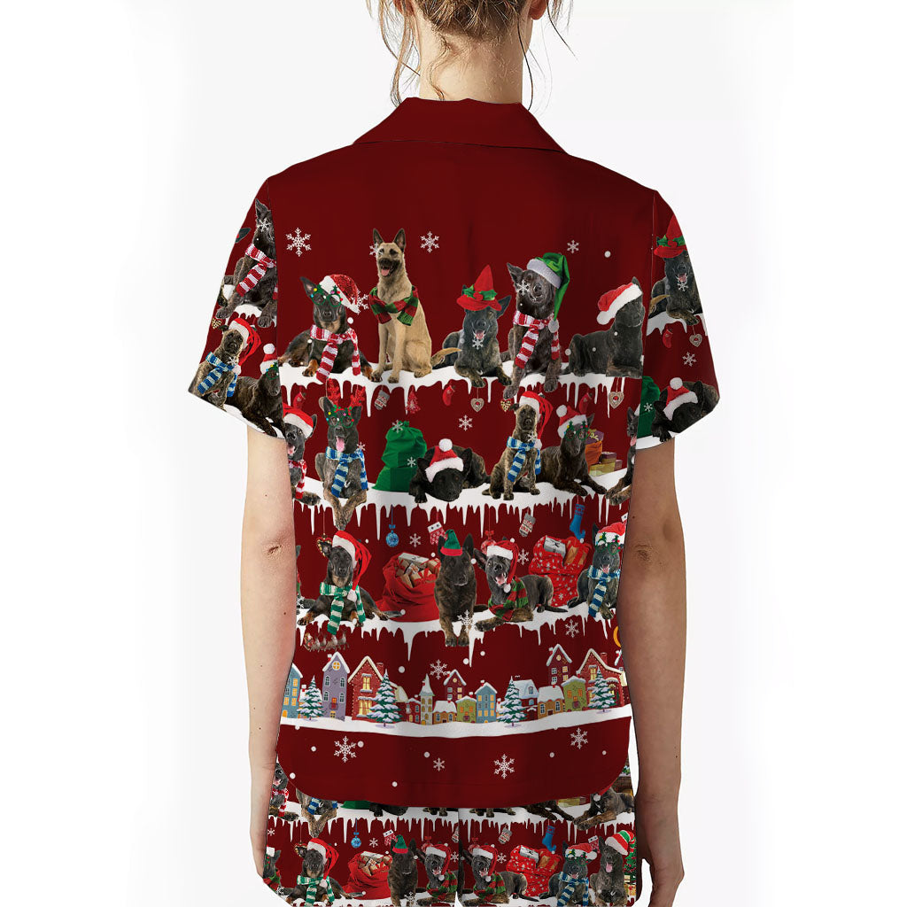 Dutch Shepherd Dog Christmas Short Satin Pajama Set