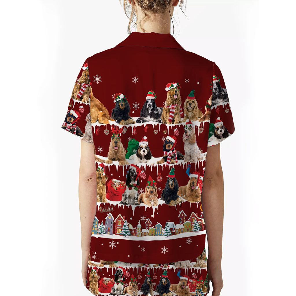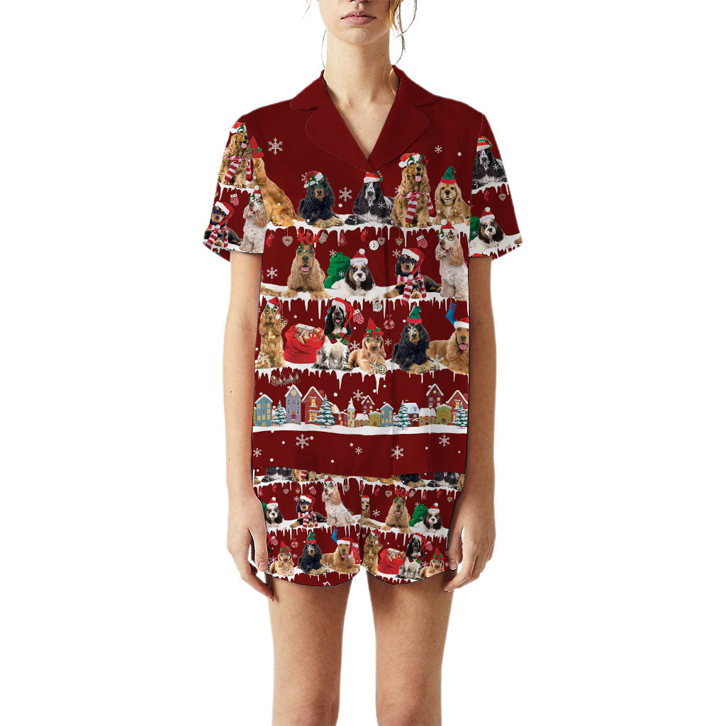 English Cocker Spaniel Dog Christmas Short Satin Pajama Set