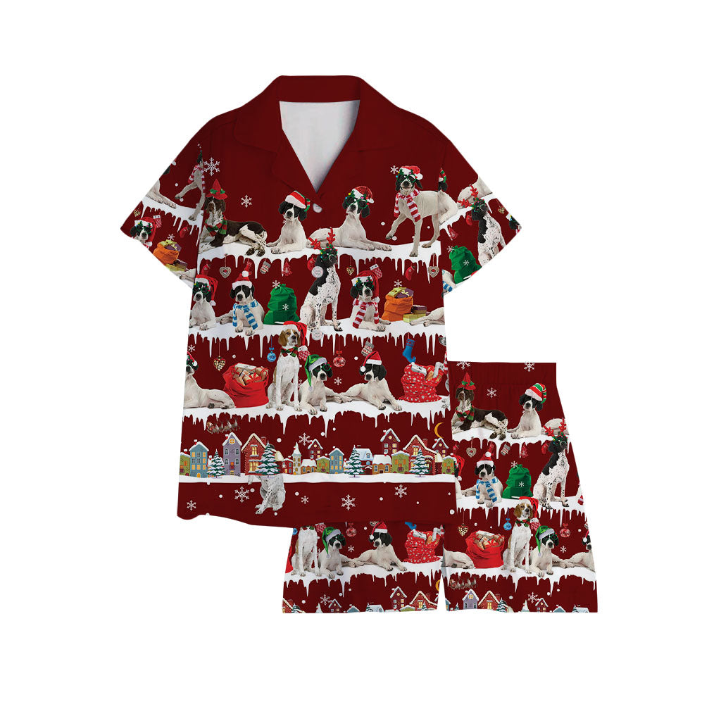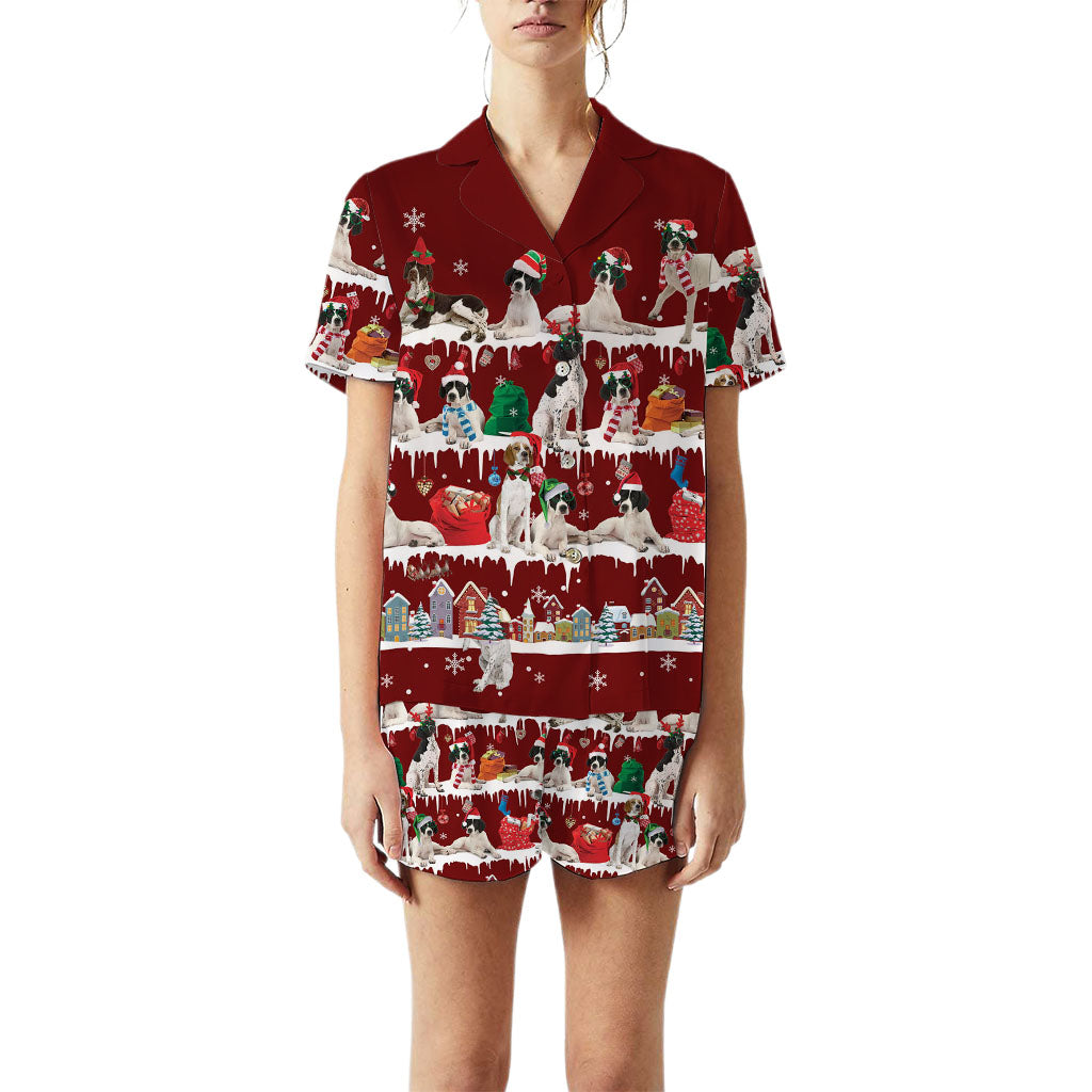 Get into the holiday spirit with this adorable English Pointer Dog Christmas Short Satin Pajama Set. Made from soft satin material, this pajama set features a cute English Pointer dog print, perfect for dog lovers. The set includes a short-sleeve top and matching shorts, making it ideal for warm nights. Treat yourself or a loved one to this festive and comfortable pajama set. Perfect for lounging at home or as a thoughtful gift for the holiday season.
