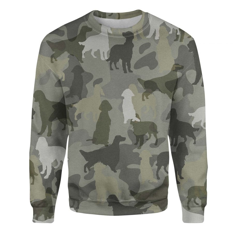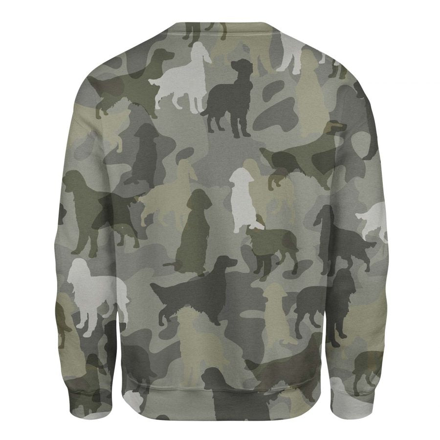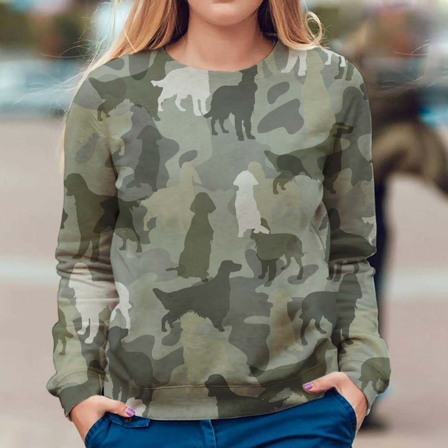 Keep your English Setter warm and stylish with our Premium Camo Sweater. Designed specifically for the unique build of English Setters, this sweater offers a perfect fit and maximum comfort. The camo pattern is ideal for outdoor adventures, blending seamlessly with nature while providing a fashionable look.