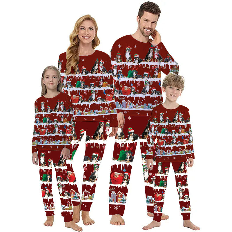 Get into the holiday spirit with our Family Christmas Pajamas Set featuring adorable Greater Swiss Mountain Dog prints. Made from soft and comfortable fabric, these pajamas are perfect for cozy nights by the fireplace or opening presents on Christmas morning. Available in a range of sizes for the whole family to match and create lasting memories together. Order now and make this holiday season extra special with our festive pajama set!