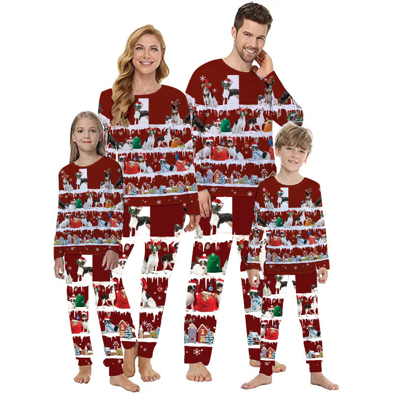 Get into the holiday spirit with this adorable Family Christmas Pajamas Set featuring a festive Rat Terrier Dog design. Made for both adults and kids, these cozy pajamas are perfect for lounging around the house on Christmas morning. The set includes matching tops and bottoms for the whole family to enjoy. Made from high-quality materials, these pajamas are comfortable and durable. Make this Christmas extra special with these cute and festive pajamas for the whole family.