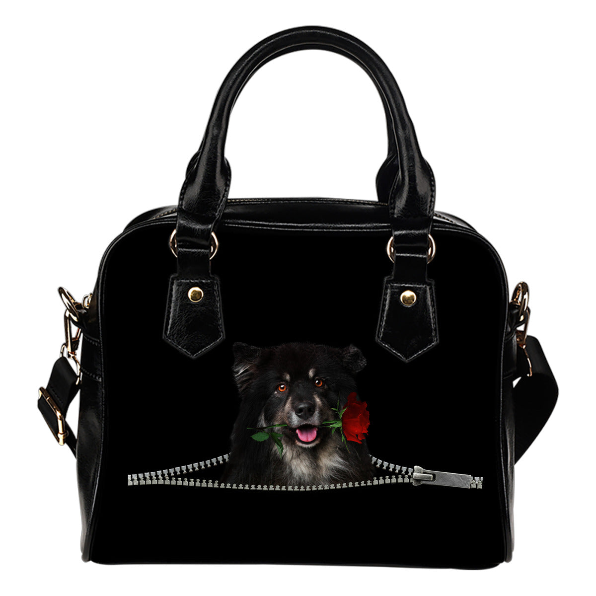 Finnish Lapphund Rose Zipper Shoulder Handbag