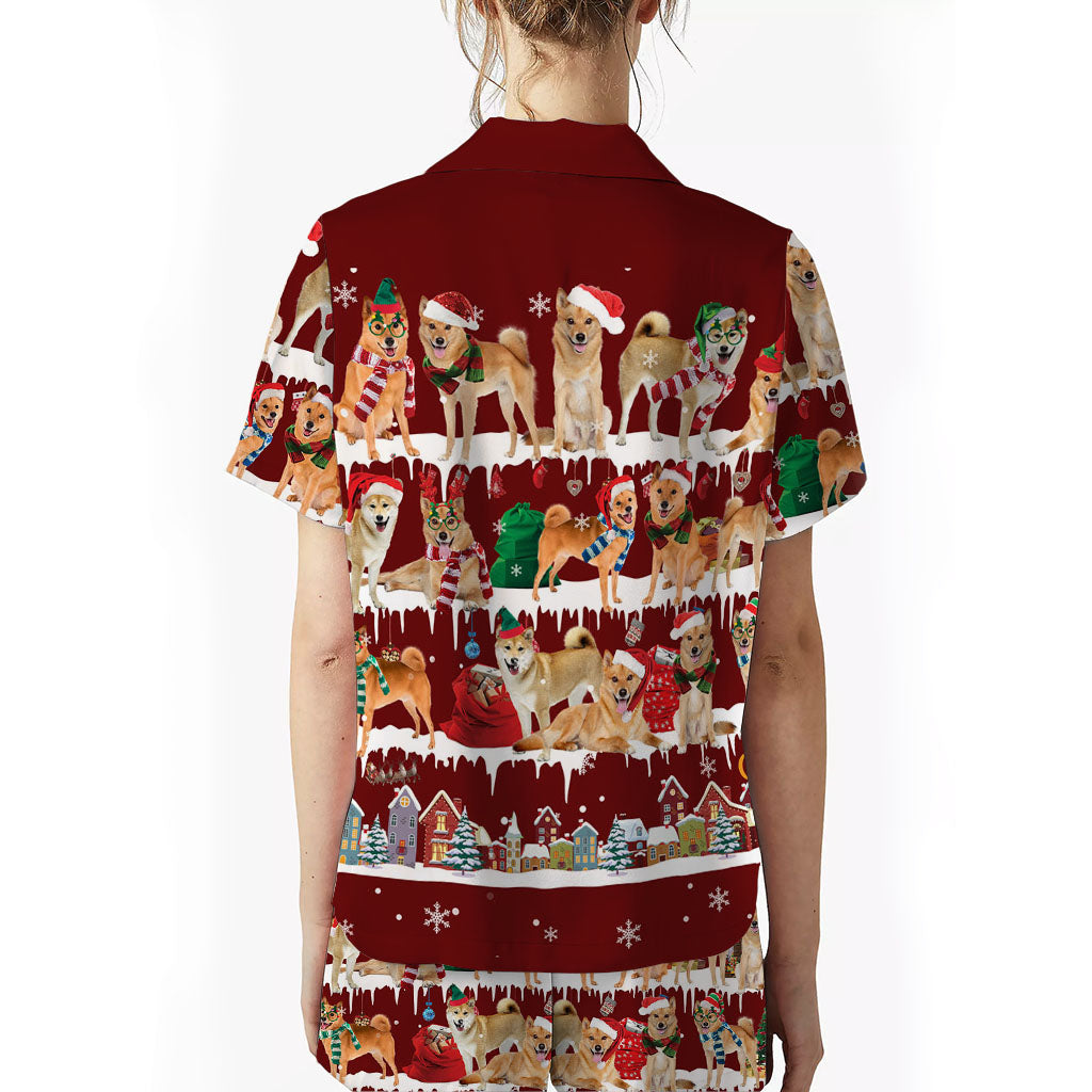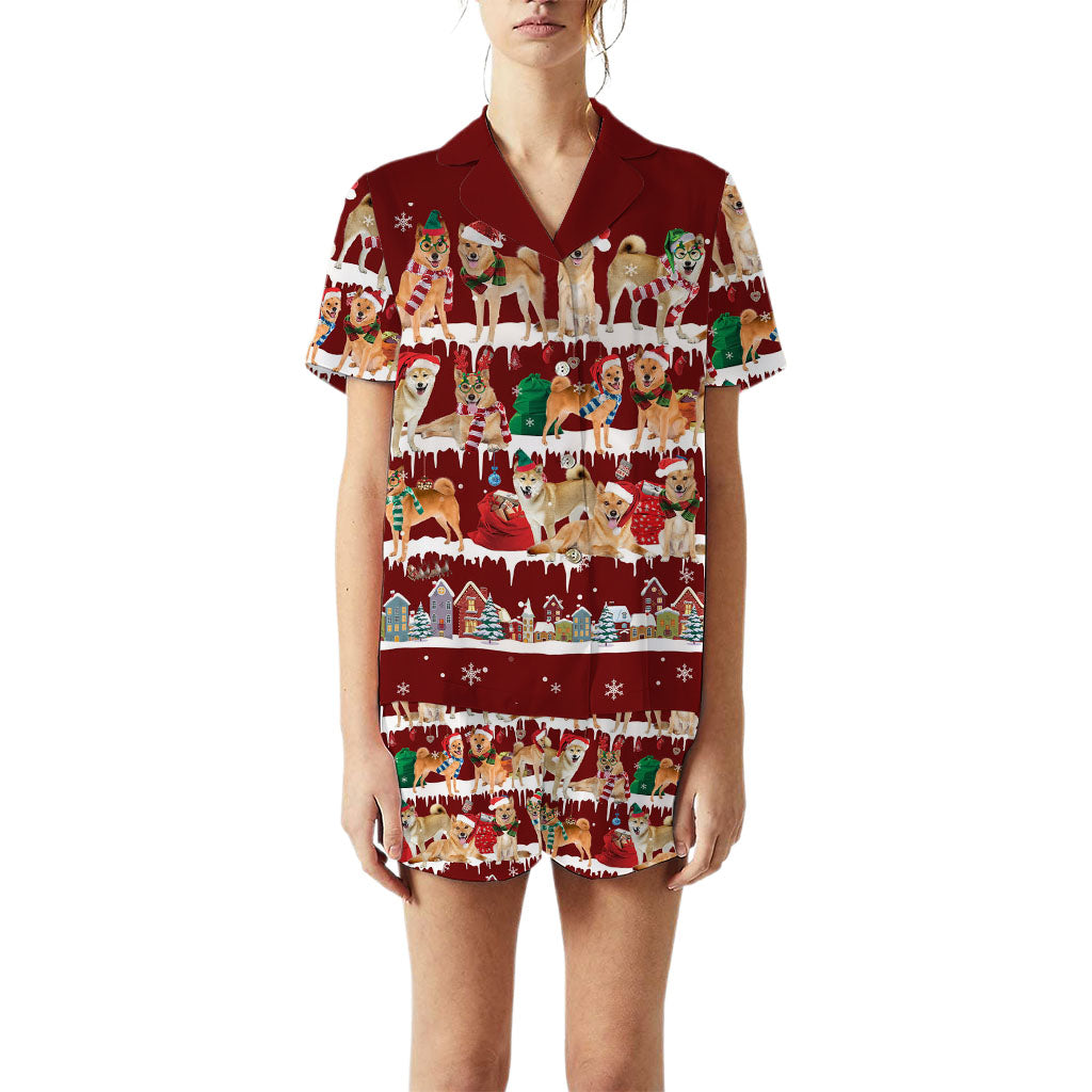Finnish Spitz Dog Christmas Short Satin Pajama Set