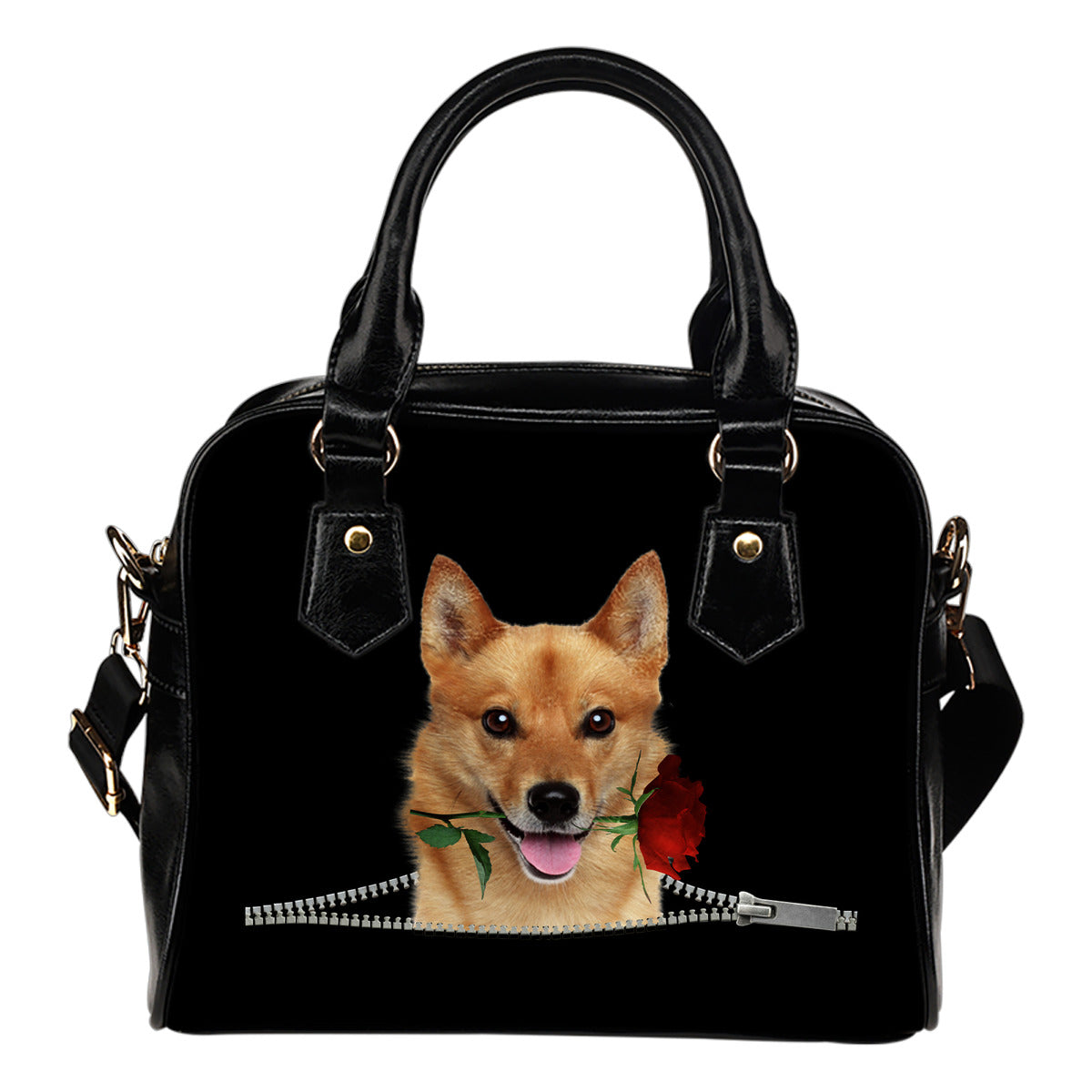 Finnish Spitz Rose Zipper Shoulder Handbag