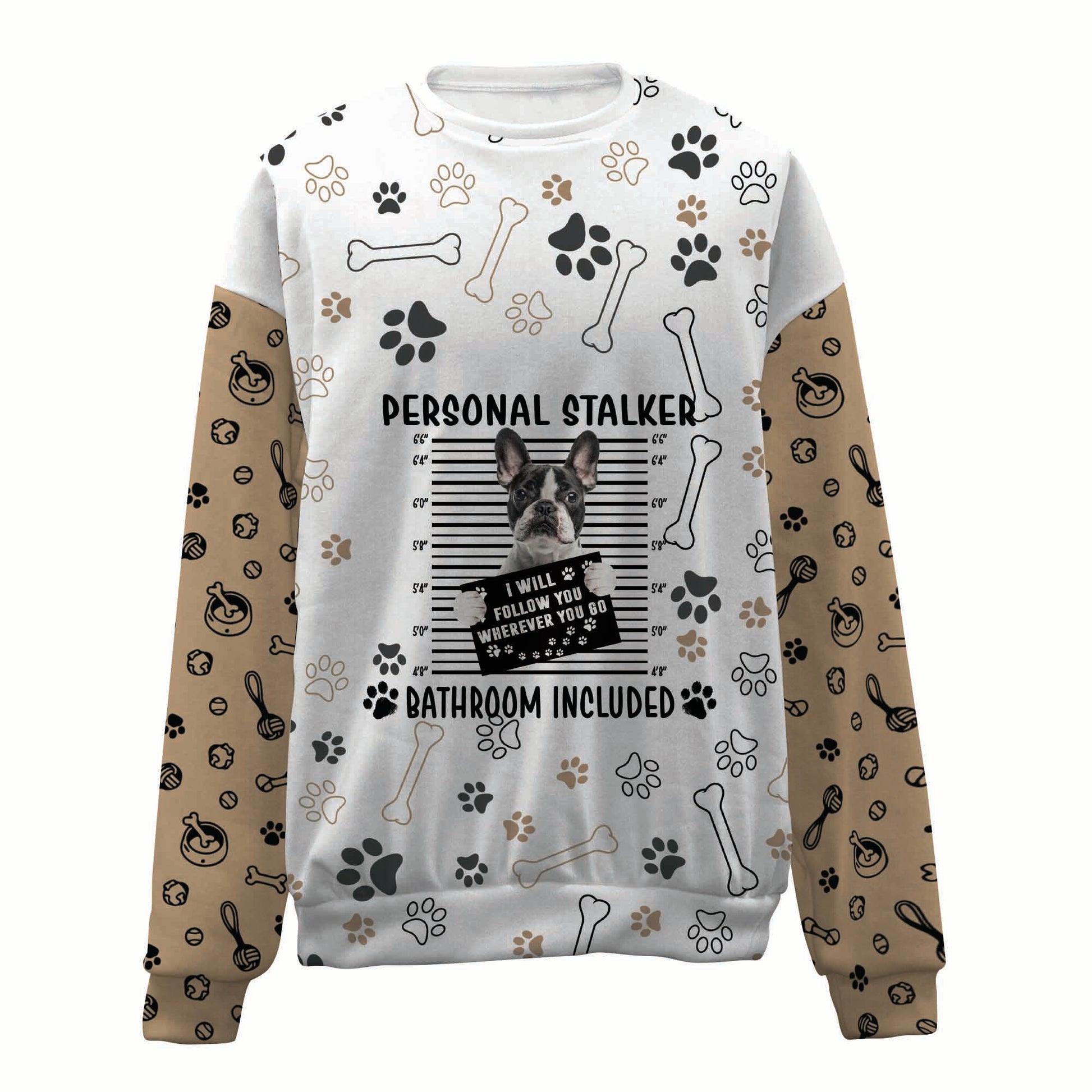 Introducing the Premium French Bulldog Personal Stalker Sweater, a must-have for every French Bulldog enthusiast. This cozy and stylish sweater is designed to keep you warm while showcasing your love for your furry friend. Made from high-quality materials, it offers both comfort and durability, ensuring it lasts through many seasons. The unique design features an adorable French Bulldog graphic, making it a perfect gift for dog lovers. Whether you're lounging at home or out for a casual day, this sweater is sure to turn heads and spark conversations. Available in various sizes to fit all dog lovers, this sweater is a blend of fashion and function. Order yours today and let your French Bulldog pride shine!