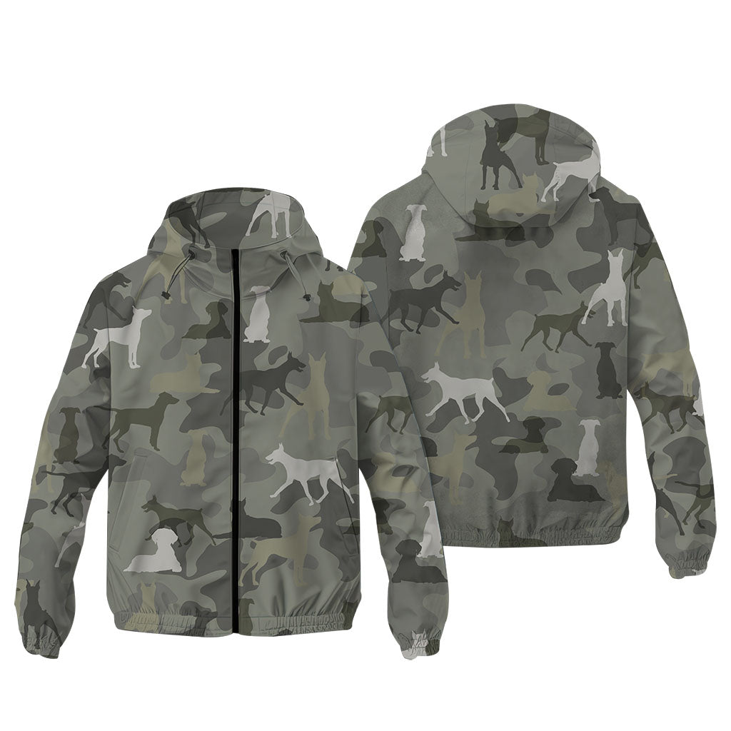 German Pinscher Camouflage Windbreaker - Camo Dog Print Hooded Jacket