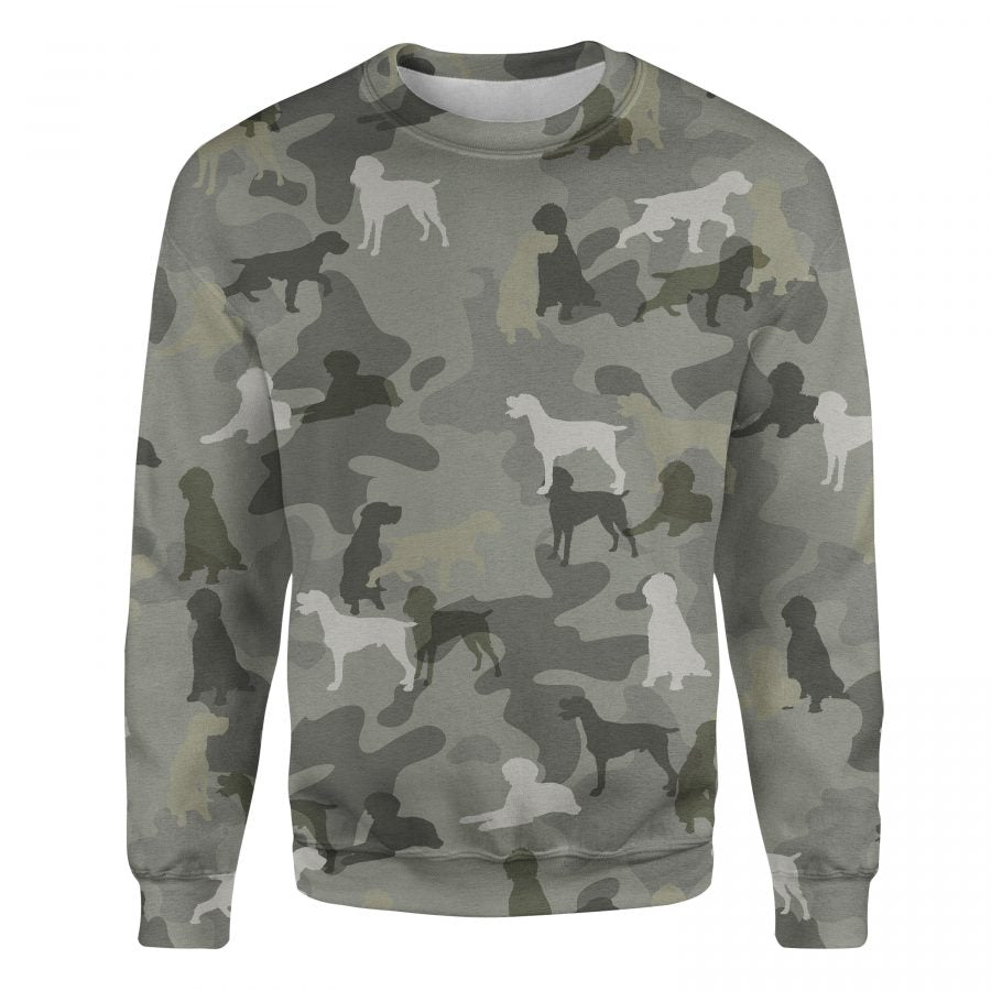 Enhance your German Wirehaired Pointer's wardrobe with our Premium Camo Sweater. This stylish and functional sweater is designed to provide warmth and comfort during chilly days. Made from high-quality materials, it ensures durability and a perfect fit for your active dog. The camo design adds a touch of adventure, making it ideal for outdoor activities. Keep your furry friend cozy and fashionable with this must-have sweater.