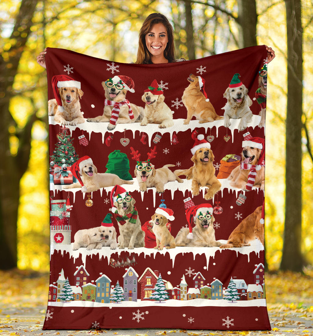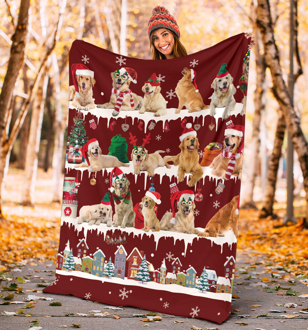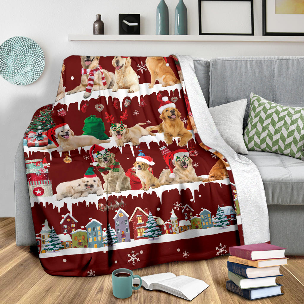Golden Retriever Snow Christmas Blanket
