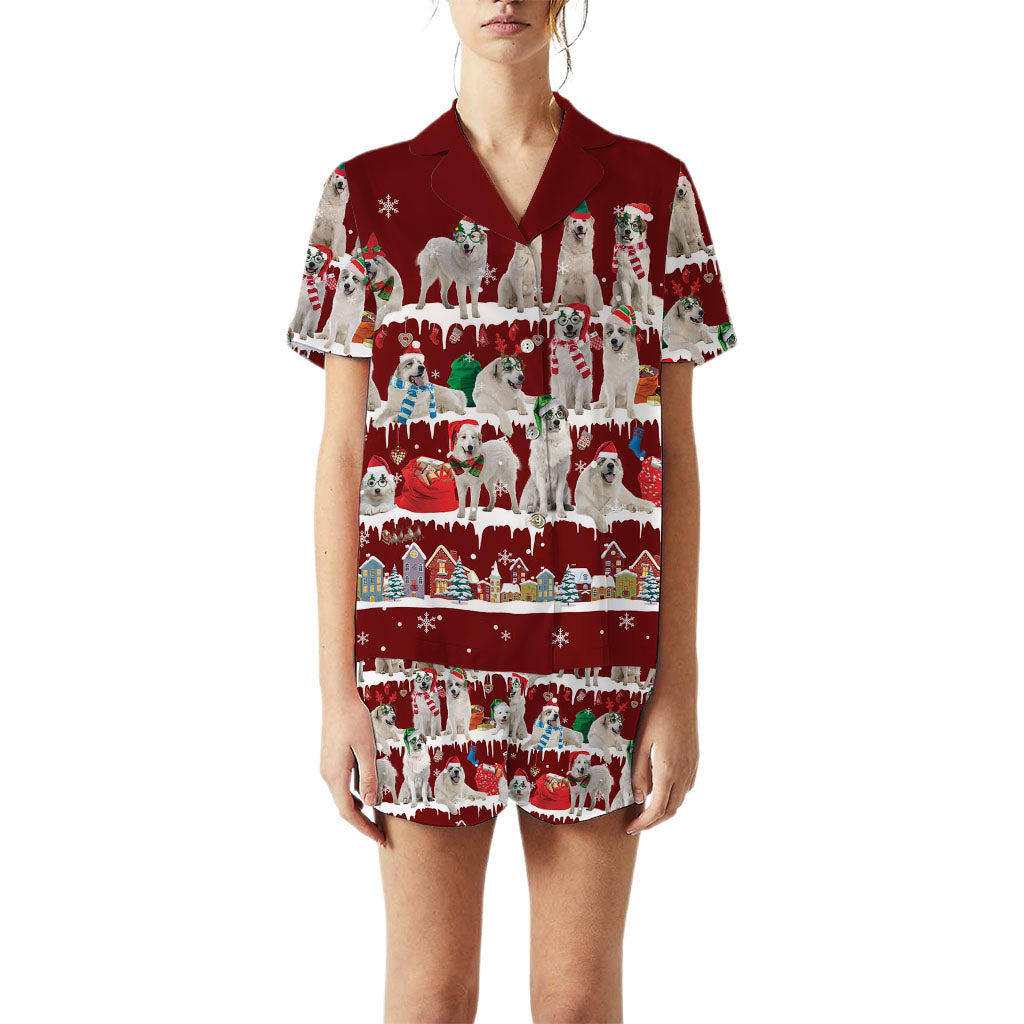 Great Pyrenees Dog Christmas Short Satin Pajama Set